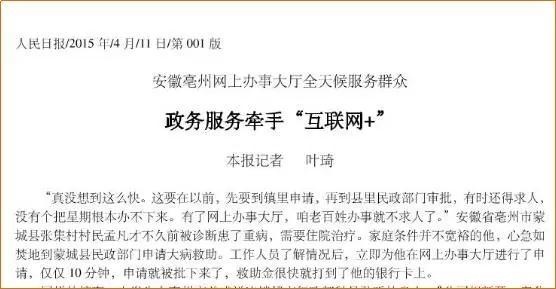 2015年4月11日,“互聯網+”與政務服務 首次在媒體(tǐ)上(shàng)聯系在一起。